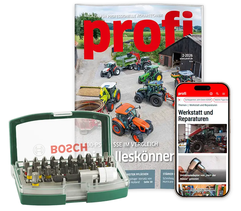 *Falls Du profi nicht weiterlesen möchtest, sende bitte innerhalb von 14 Tagen nach Erhalt der letzten Ausgabe eine Mitteilung an profi Leserservice, 48084 Münster. Die Lieferung wird dann sofort und ohne weitere Verpflichtung eingestellt. Oder Du liest profi ohne Risiko weiter und kannst Dein Abonnement jederzeit kündigen. Zu viel bezahlte Beträge erhältst Du zurück. Der Jahresbezugspreis 2026 für profi Print + Digital (Inland und Österreich) liegt bei 189,00 EUR bzw. für profi Digital bei 149,40 EUR. Auslandspreise auf Anfrage.
